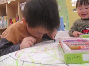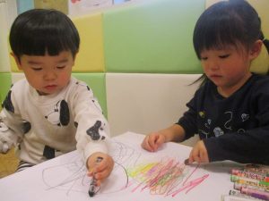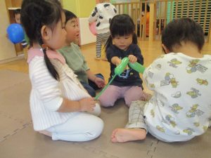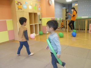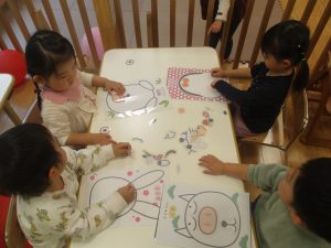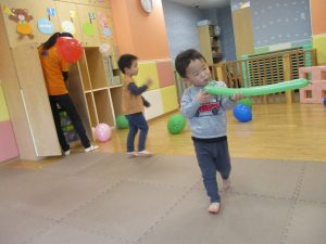 クレヨンや福笑い等の机上遊びを楽しんだり、風船遊びを通して思い切り体を動かして過ごしました!