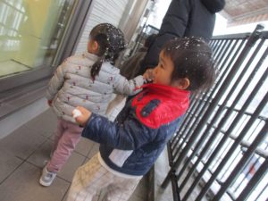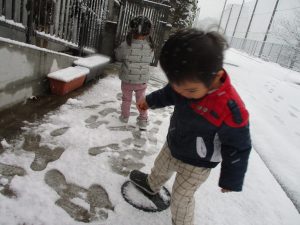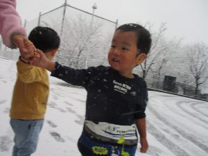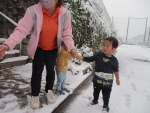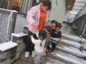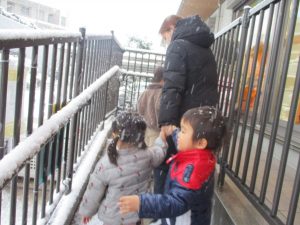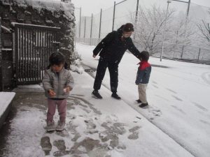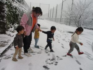 関東地方や千葉県は数年に1度しか積雪がない為、サンライズキッズ谷津園としましても開園より初めての積雪を体験する形となりました。