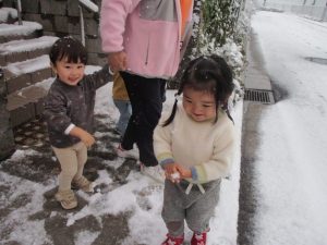 雪を不思議そうに眺める姿や感触を確かめる姿は非常に可愛く、お子様達にとって貴重な経験となりました♪