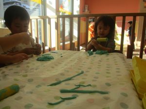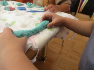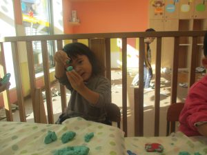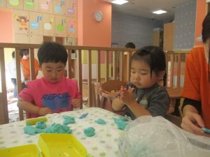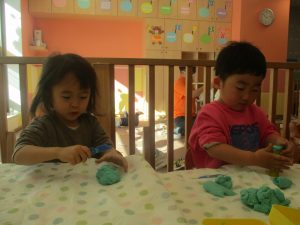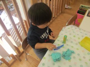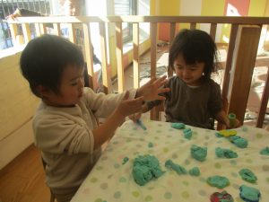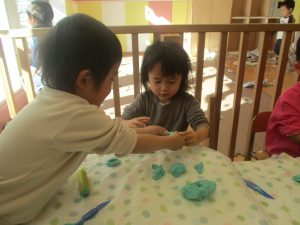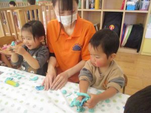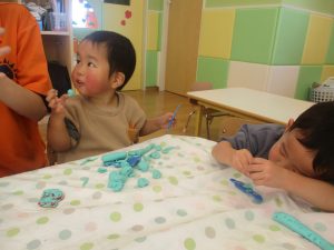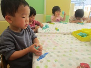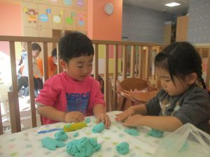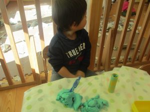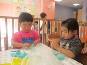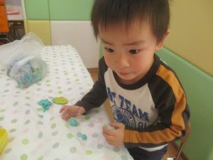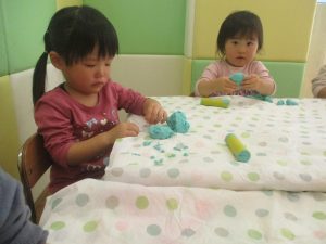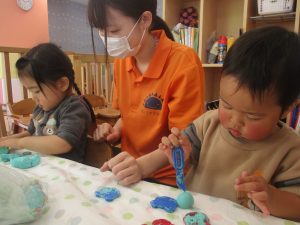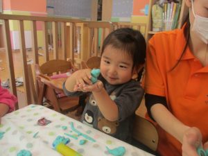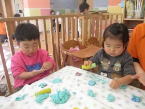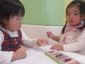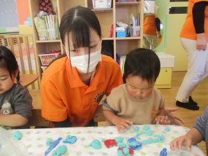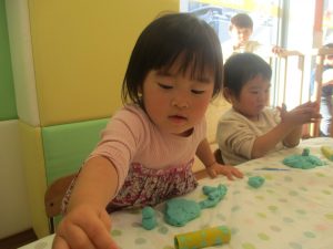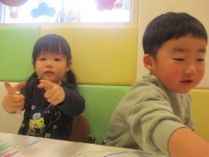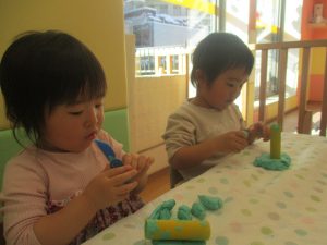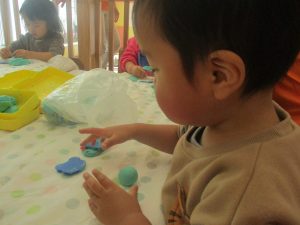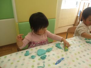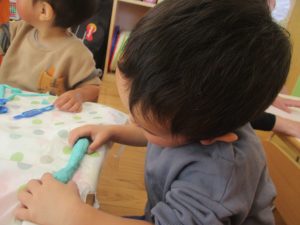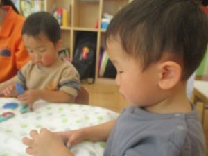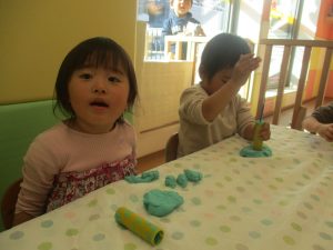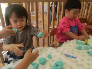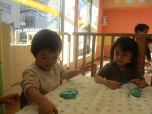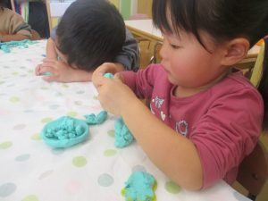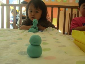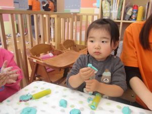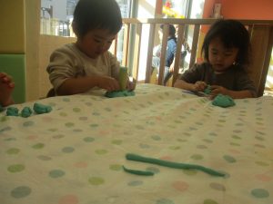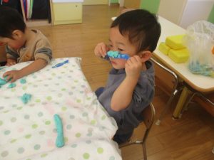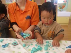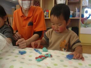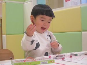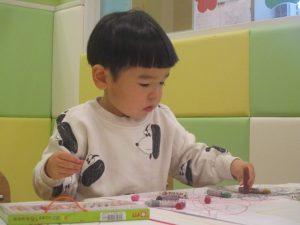 机上遊びでは粘土を行いましたが、こちらも「雪だるま出来た!」と季節感たっぷりの遊びを展開しておりました♪