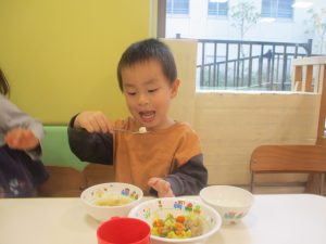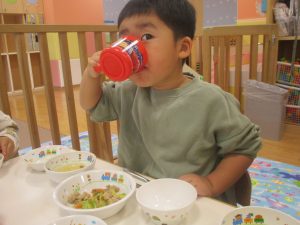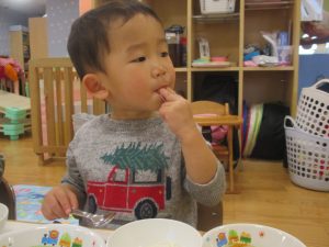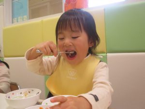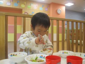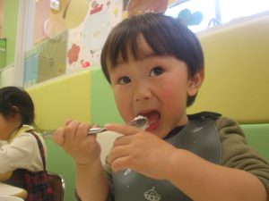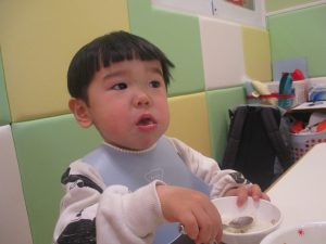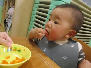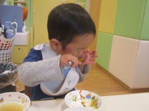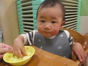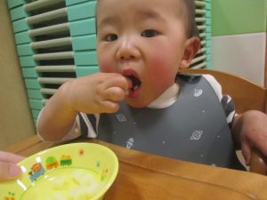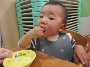 0歳児クラスのお友達は新年より離乳食の後期に移行となりました。