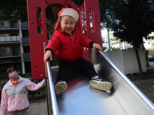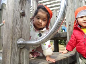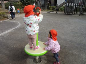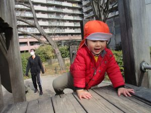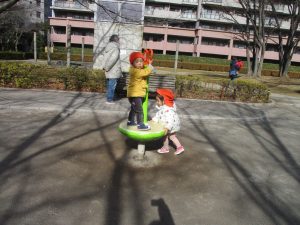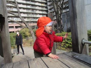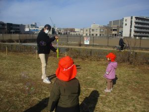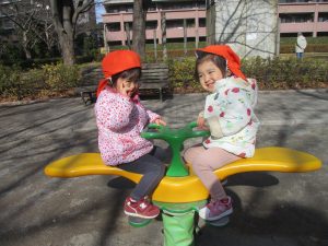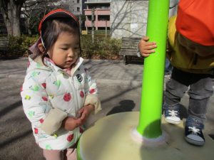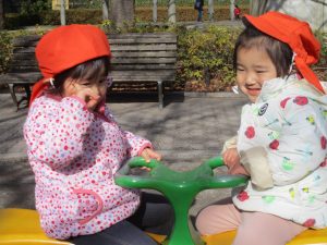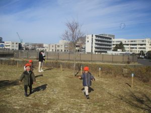 さくら公園では固定遊具で遊んだり、シャボン玉を追いかけて思い切り体を動かして過ごしました。