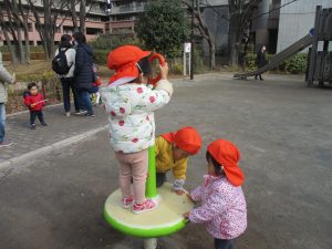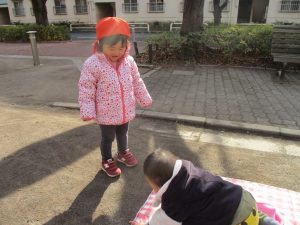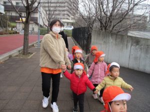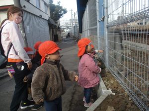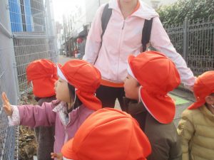 園周辺の工事現場を皆で見たり「寒いねぇ~」と冬の寒さを存分に感じておりました!