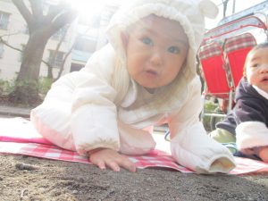 0歳児クラスのお友達は本日も外気浴を存分に楽しみました♪