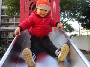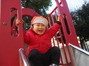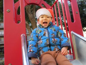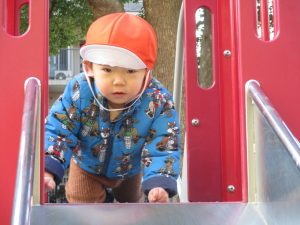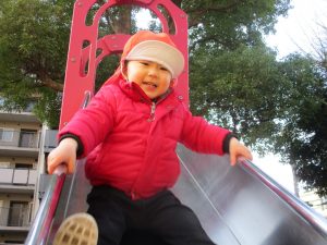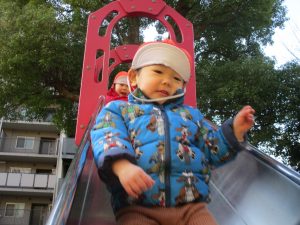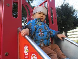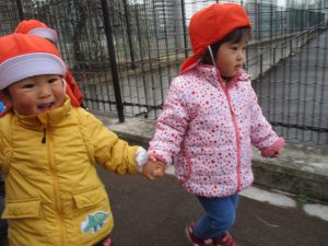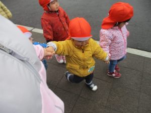 0歳児クラスと1歳児クラスのお友達は谷津1号公園までおでかけです。