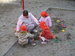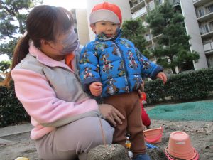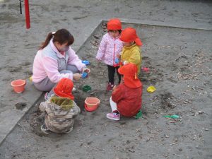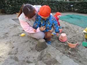 固定遊具で遊んだり砂場でのままごと遊びに夢中でした!