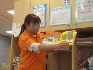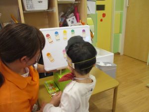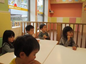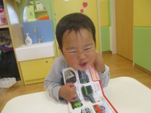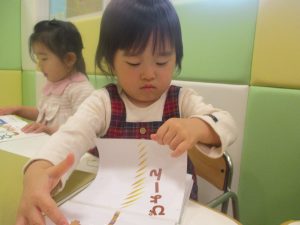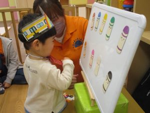 机上遊びでは塗り絵を楽しんだり絵本を読んで過ごしましたが、各々が好きなキャラクターを選び集中して塗り絵を行えました。
