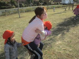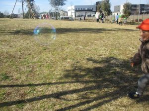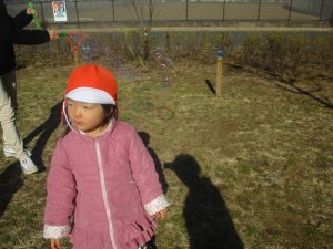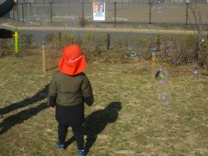 シャボン玉を追いかけたり先生との追いかけっこを通して、たくさん体を動かす事が出来充実した時間を過ごす事が出来ました!
