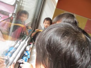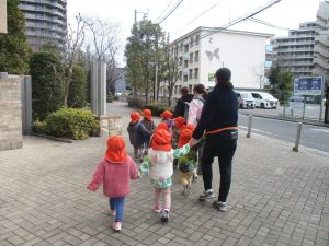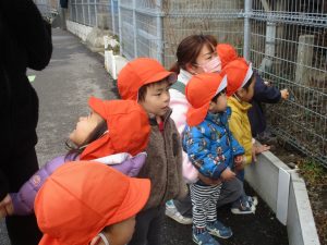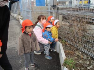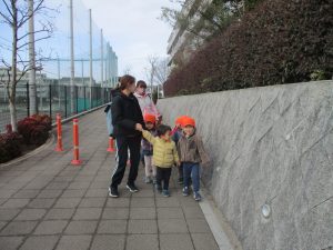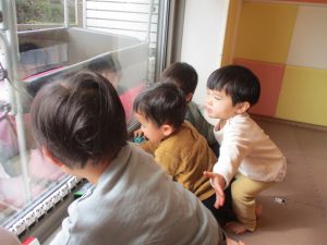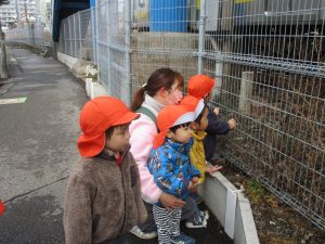 1.2歳児クラスのお友達は津田沼駅周辺まで電車を見に行きました。