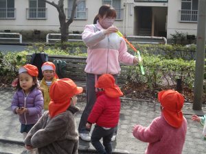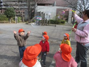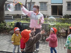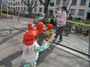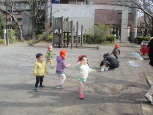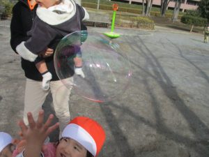 固定遊具やシャボン玉を使って心行くまで体を動かして遊び、大満足の1日となりました♪