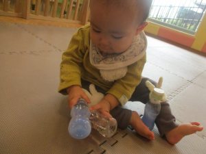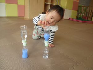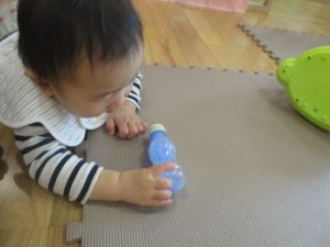 ペットボトル内で動く水の流れを楽しそうに眺めており、サイズ感もちょうど良く1度掴むとなかなか渡してくれません。笑