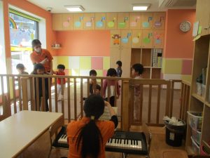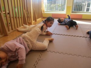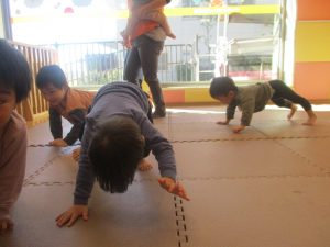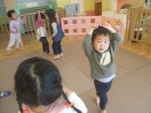 朝方のリトミックも少ない人数の中、音楽に合わせて動物になりきり楽しそうに体を動かして参加し全体的に盛り上がっておりました。