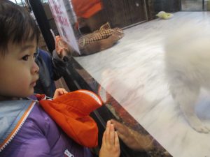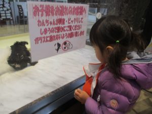 大好きなモール内のペットショップに立ち寄り、楽しそうにじゃれ合っている犬や猫を見ては「こっちおいでー!」と可愛く声掛けをしておりました♪