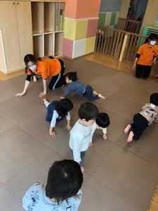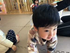 0歳児クラスのお友達も、お兄さんお姉さんが逞しく遊ぶ姿をじーっと見つめておりました。