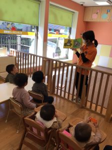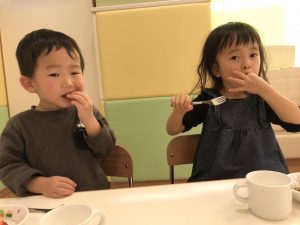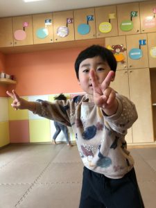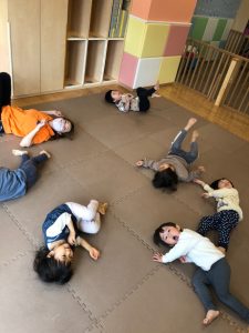 朝方の英語活動を楽しんだ後は室内にて過ごしました。