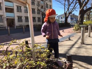 固定遊具で体を動かしたり、季節の花を見つけてはひと足早い春を感じておりました。