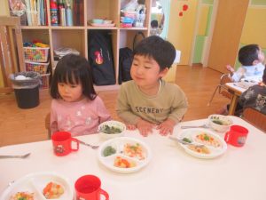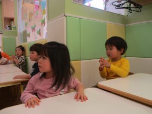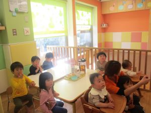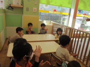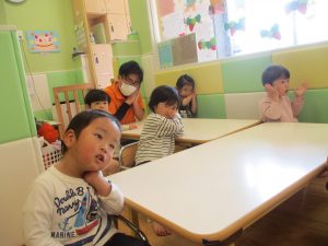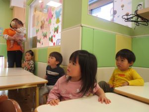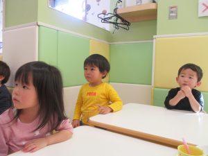 皆で楽しく行ったひな祭り製作を前に飾り、ひな祭りにちなんだ絵本を見たり「ひなまつり」の歌を歌っては存分に雰囲気を味わいながら全員が楽しく参加することが出来ました!