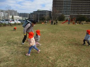 0歳児クラスと2歳児クラスで防災公園まで遊びに行きました!