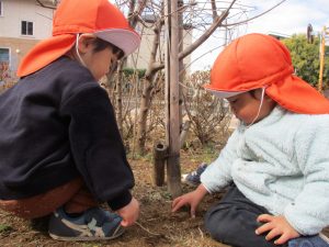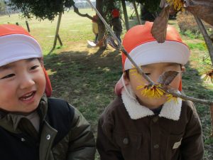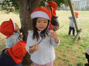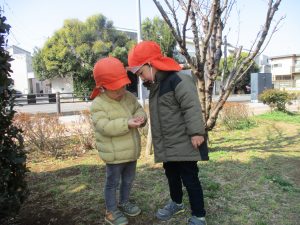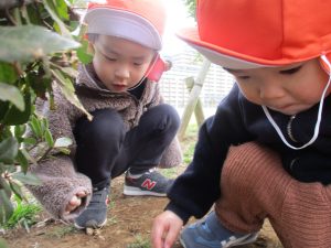 木の実や花を探しては互いに見せ合う場面もあり、存分に自然物探しを堪能しておりました。