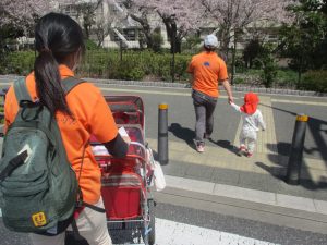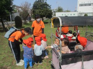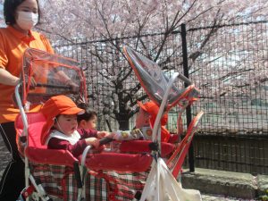 2歳児クラスのお友達は、さくら公園まで遊びに出かけました。