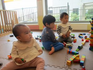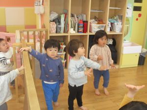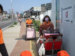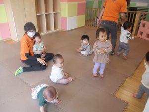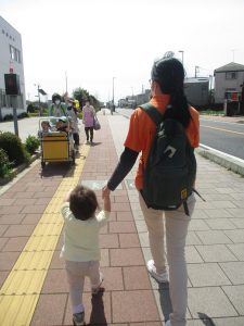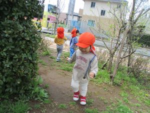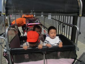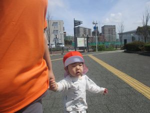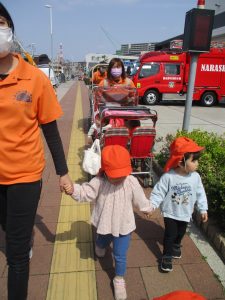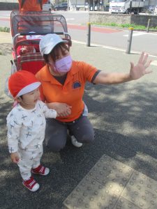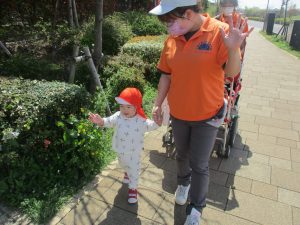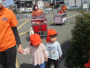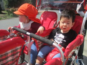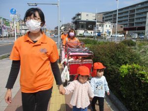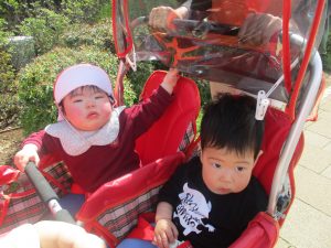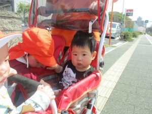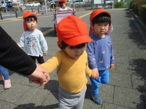木曜日は、0歳児クラスから2歳児クラスまで全員で一緒にお散歩にでかけました。