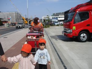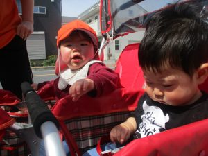 戸外散歩では、桜並木のトンネルを通ったり、園近くの消防署で消防車を見たりして気分転換をし、笑顔を見せておられました♪