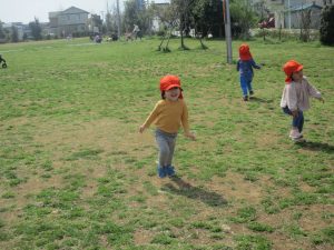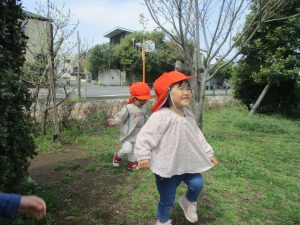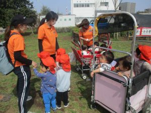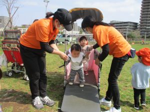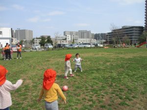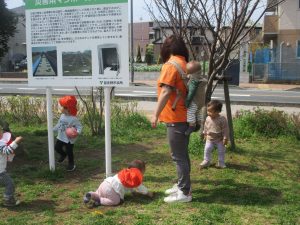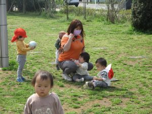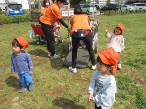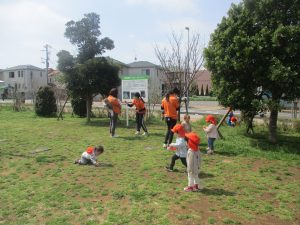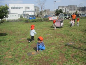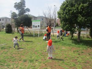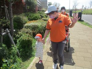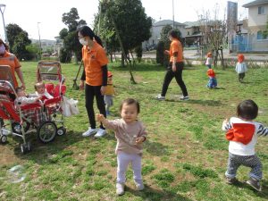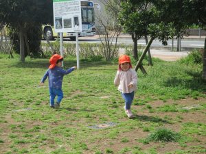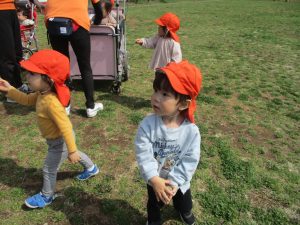 全員でのお散歩は今年度初めてでしたが、園近くの防災公園まで行ってのびのびと過ごしました。