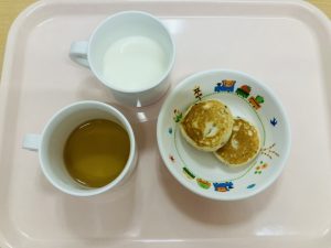 子どもたちの大好きなパンケーキは小さめに作ることで食べやすく、大好評です。