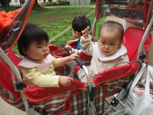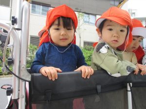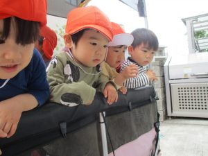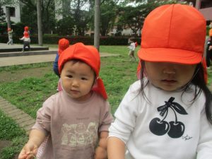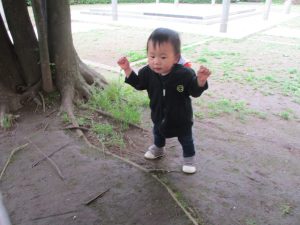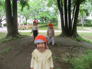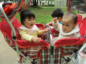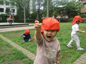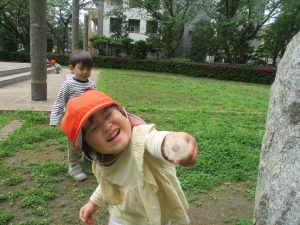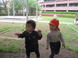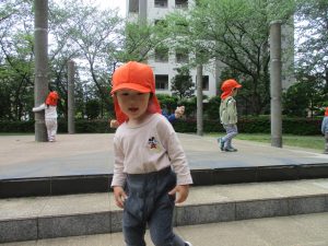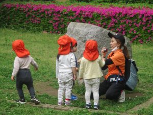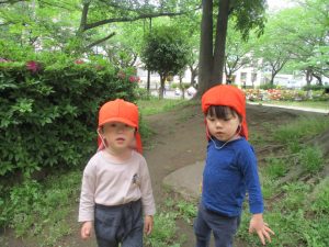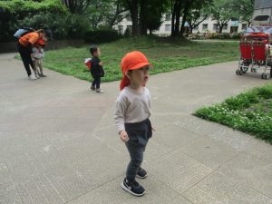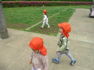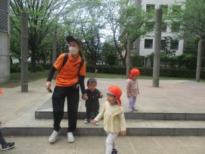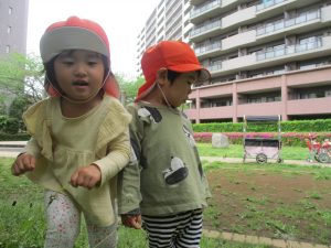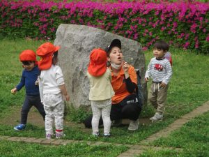 1、2歳児クラスのお友達は、みんなでさくら公園にお出かけをしました。