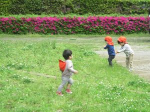 また、広いスペースをお友達や先生と一緒に「よーいどん!」と気持ちよさそうにのびのびと走りまわる姿も見られました♡