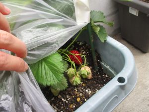 園前で育てているいちごが少しずつ赤く色づきはじめてきました♡みんなで食べられる日が楽しみです…♡