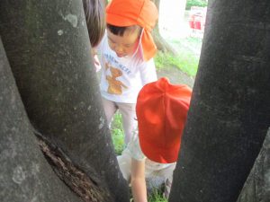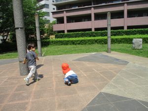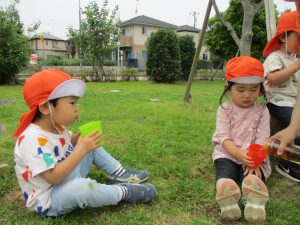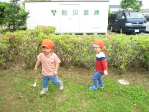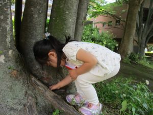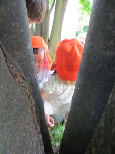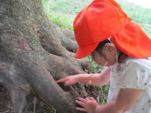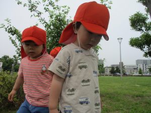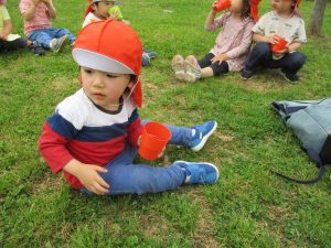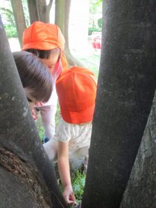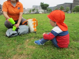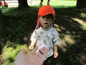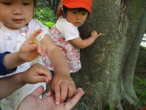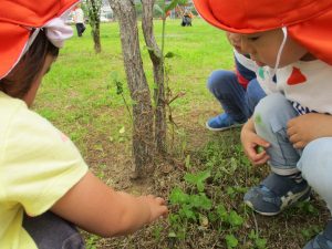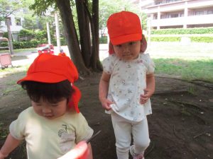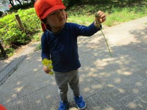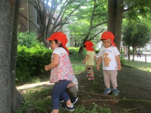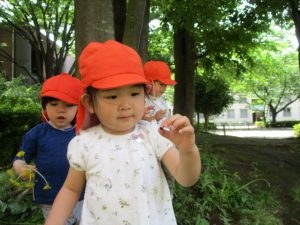 2歳児クラスのお友達はお子様たちのご希望により、本日も虫探しに防衛公園へお出かけをしました。