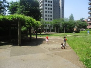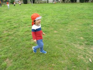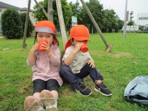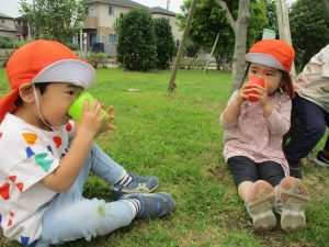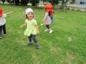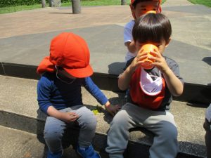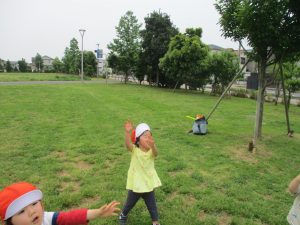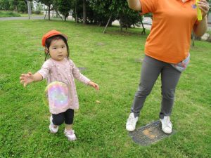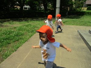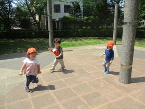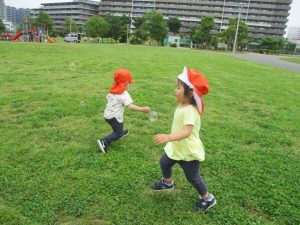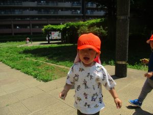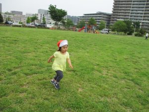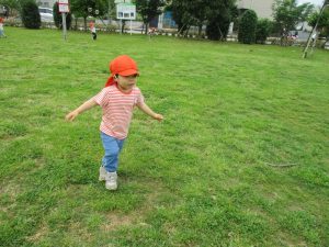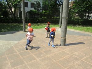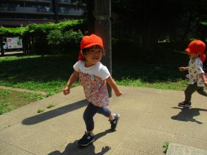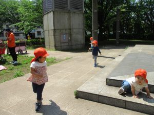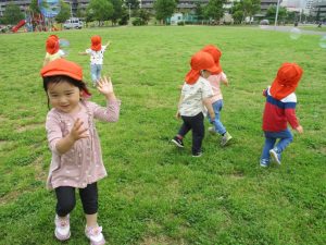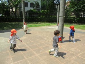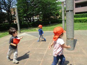 木曜日は、とても良いお天気で全員でさくら公園の広場までおでかけをして遊びました。