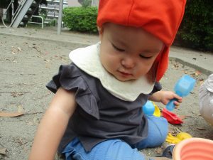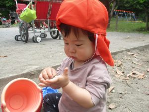 砂場では落ち葉を拾ったり砂に触れて感触を楽しんだり等、先生や月齢の近いお友達とゆったり好きな遊びを楽しむお子様たちの姿が見られました♡