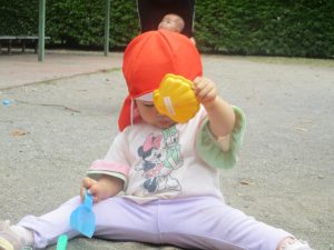 0、1歳児クラスのお友達は、谷津一号公園までおでかけをしました。