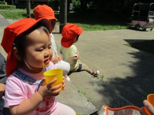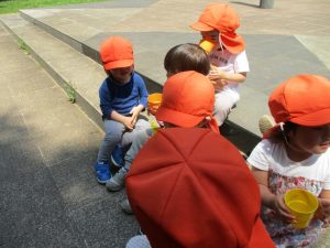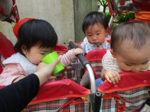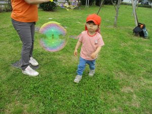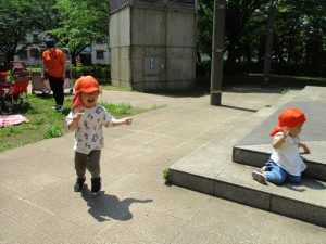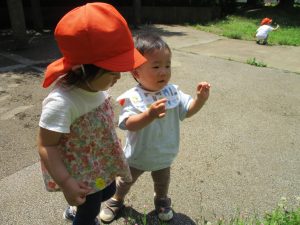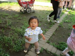 「何~?」と2歳児クラスのお兄さんお姉さんの後をついていく1歳児クラスのお友達の姿も見られて、とても微笑ましく思いました。
