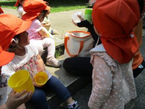 保育園では、お友達を通して興味を持ったり「わたしもやってみようかなぁ~」と思ったりするお子様の姿も多く見られ、お友達との交流やふれあいの時間も大切にしていきたいと思っております。
