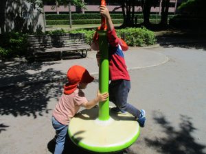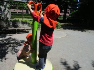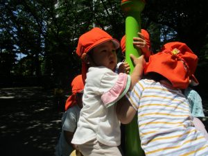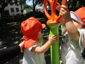木曜日も心地の良い青空が広がり、みんなでさくら公園まで遊びに行きました。