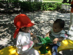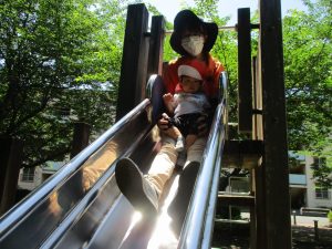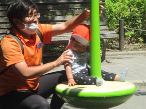先生と一緒に滑り台を滑ったりシーソーに揺られたり…心地よさそうに過ごしておられました♪
