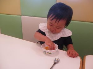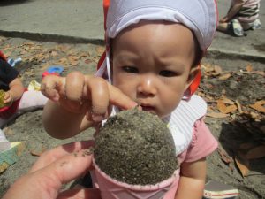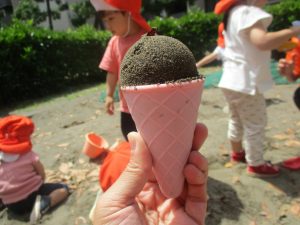 本物顔負けのアイスを先生に作ってもらい、今にも被りつきそうな表情は何とも言えない程可愛いですね!