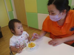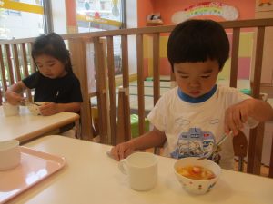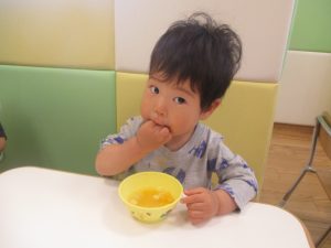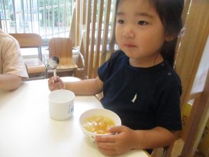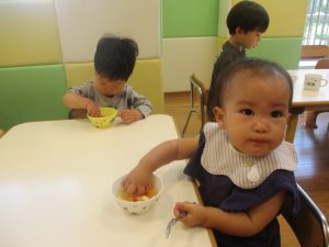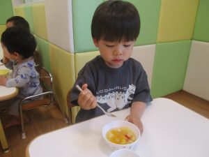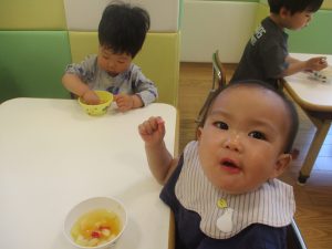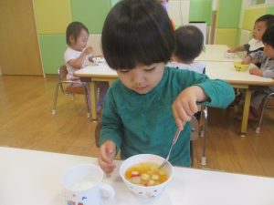 木曜日のおやつがフルーツポンチでしたので、その中に仲間入りさせてもらい「イチゴ入りフルーツポンチ」をみんなで美味しくいただきました♡