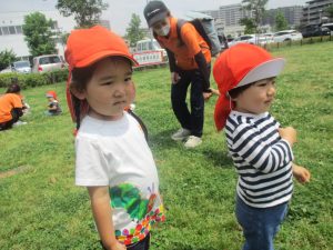 本日は午後から雨予報でしたが、雨の合間を見てみんなで防災公園まで遊びに行きました。