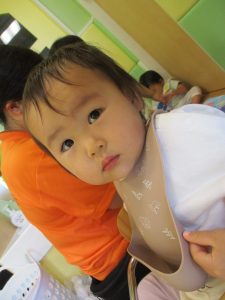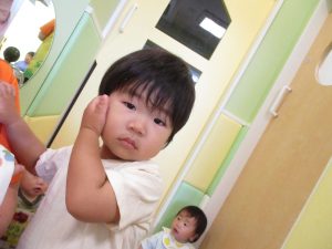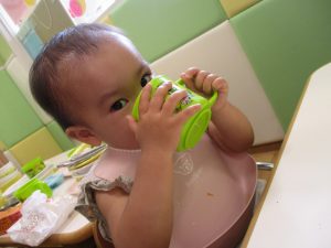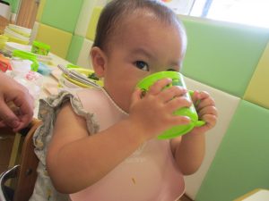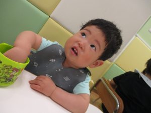 お着替え待ちのお子様達も食後の「ティータイム」を楽しんだり、お友達の様子をじーっと見つめては今か今かと先生とのお着替えを楽しみにしております!
