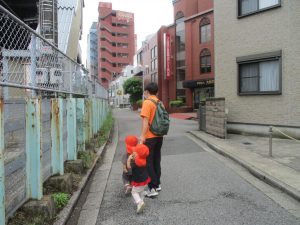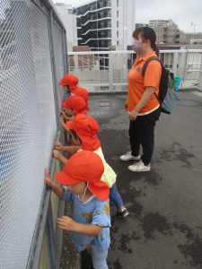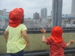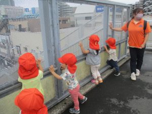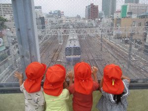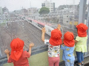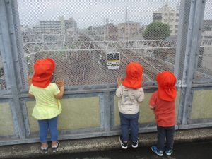 2歳児クラスのお友達も津田沼駅周辺まで電車を見に行きました。