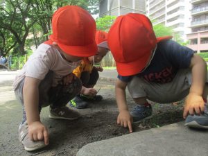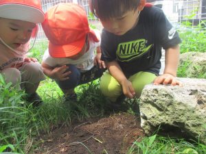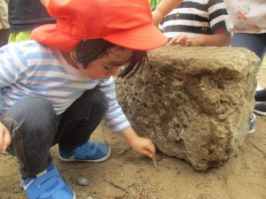 大きな石やコンクリートを裏返す際のお子様達の興味に満ち満ちた表情は、なんとも言えない程可愛いですよね♪