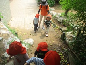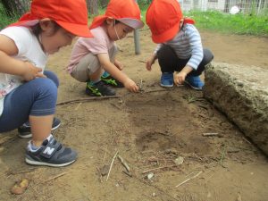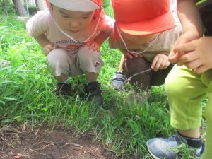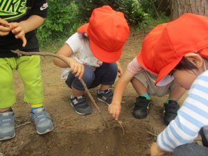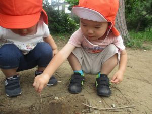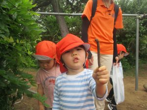 2歳児クラスのお友達は谷津コミュの奥にある林まで足を運び自然物探しを堪能致しました!