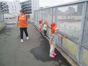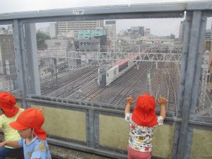 0.1歳児クラスのお子様達は津田沼駅周辺まで電車を見に行きました。