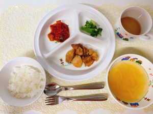 雨上がりの暑いときにナスやトマトなどから水分補給をすることはとても大切です。お肉だけでなく、お野菜もいっぱい食べて「ごはんおいしいね!」と言ってくれました♪
