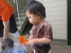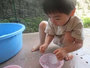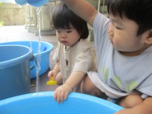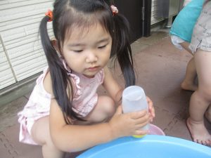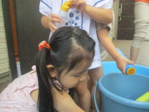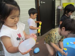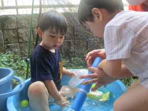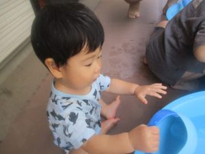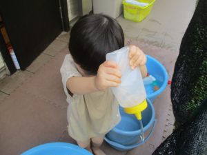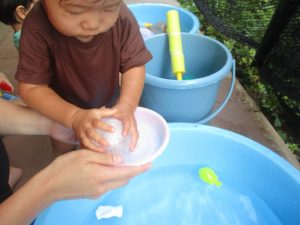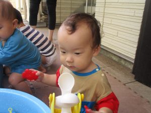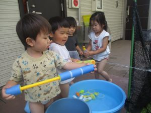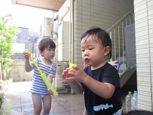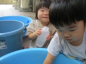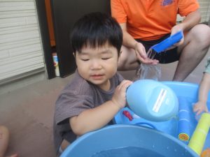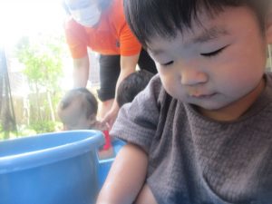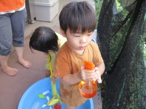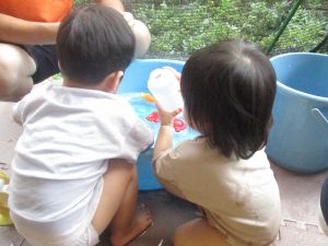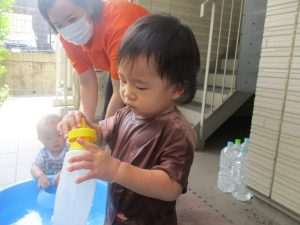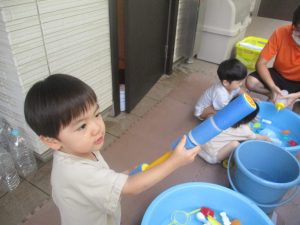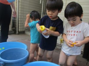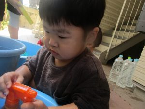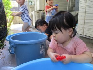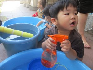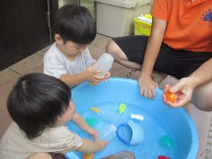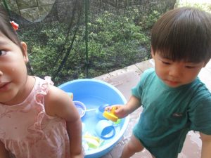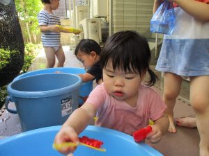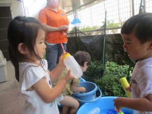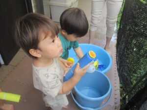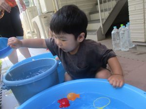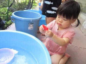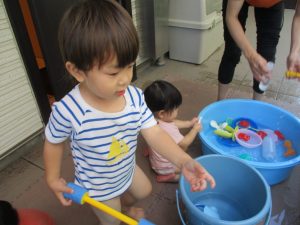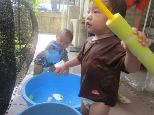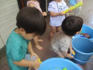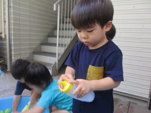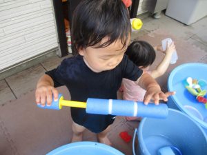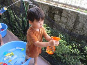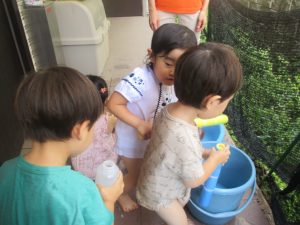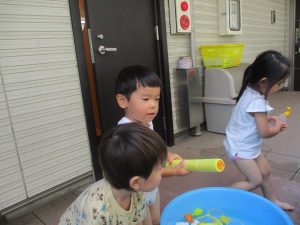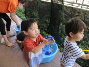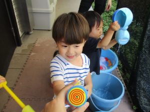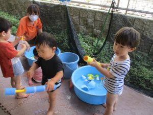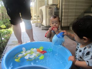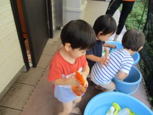 それぞれが、お気に入りの玩具を手に取り「よし!今日も始めるぞー!」と水遊びがスタート致しました!