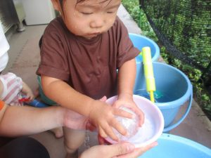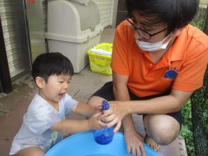 ここから1ヶ月程はまだまだ厳しい暑さが続きますので9月に入っても水遊びは行う予定です♪
